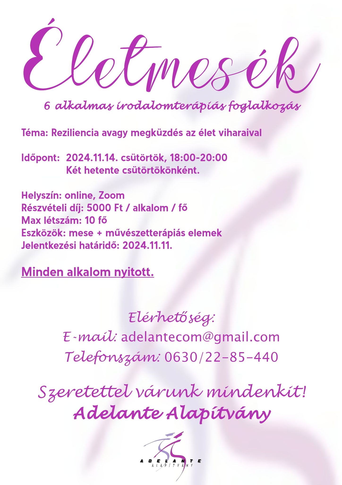 -1 szociális jegy igényelhető- amennyiben úgy érzed, most nem engedheted meg magadnak, hogy kifizesd az alkalmakat, kérlek jelezd felénk, mert 1 főnek díjmentesen felajánljuk a részvételt