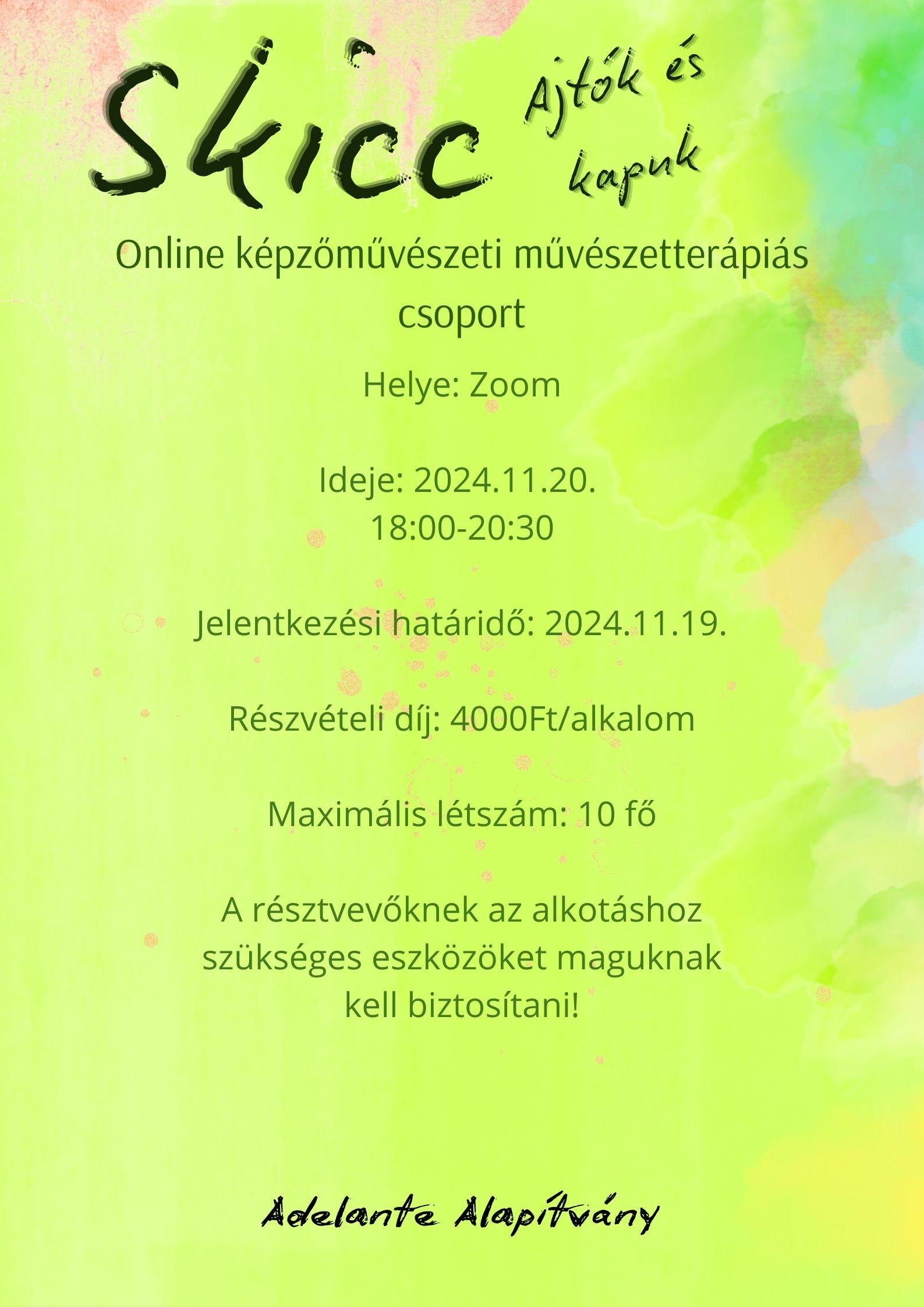 Az 4 alkalom időpontjai előreláthatólag: november 13., december 18., január 15., február 12. A csoport kezdési időpontja 18.00, a befejezésé kb. 20.00.