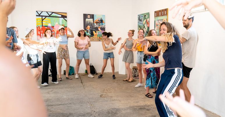 Az elején Krisztina meglátásai alapján egy rövidebb bevezetővel indítunk, majd a szubjektivitásból születő, gesztusművészeti tárlatvezetéssel folytatjuk, ahol az arra szívesen vállalkozó résztvevők a képeket a testükkel, mozgásban való kísérletezéssel fedezhetik fel és jeleníthetik meg.
