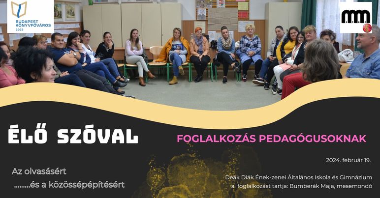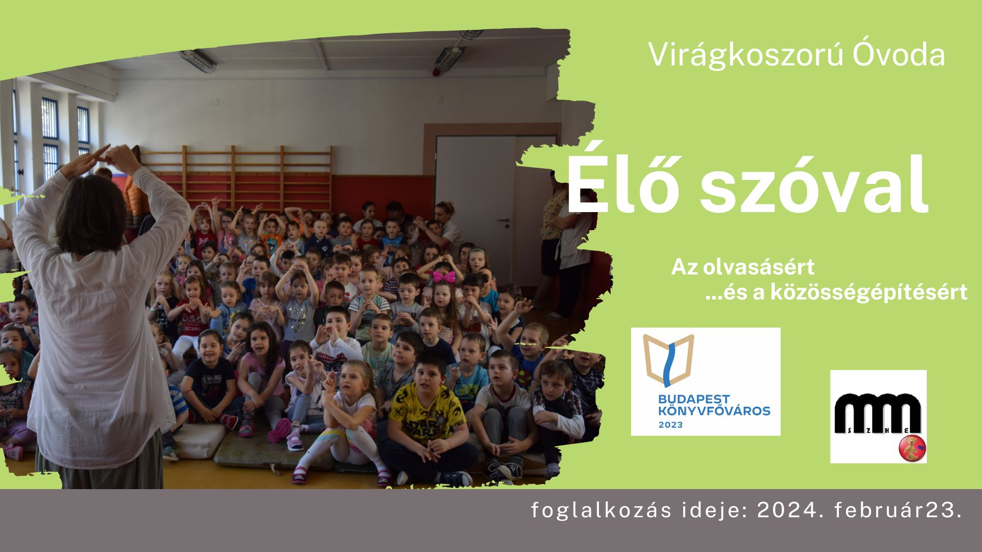 Bumberák Maja mesemondó, művészetterapeuta, a Magyar Művészet- és Szocioterápiás Közösségépítő Egyesület képviseletében tart 2 mesefoglalkozást Budapesten a Napraforgó Egyesített Óvoda Virágkoszorú Tagóvodájában, a VIII. kerületben, 2024. február 23-án. A rendezvény a Budapest 150 – Könyvfőváros 2023 eseménysorozat részeként valósul meg.