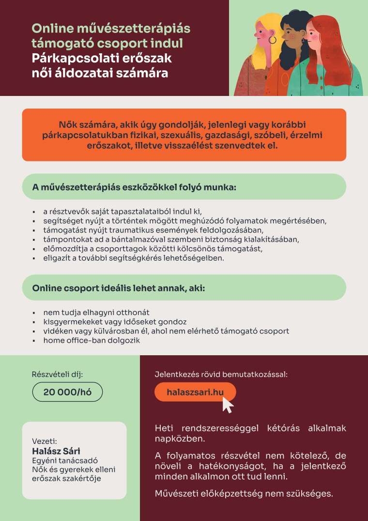 Online művészetteràpiás támogató csoport párkapcsolati erőszak női áldozatai számára